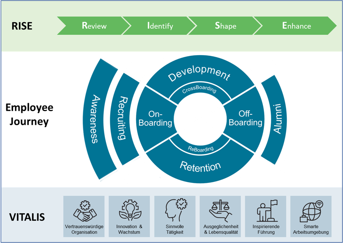 RISE ist ein strukturierter Fahrplan für organisationalen Wandel – und wird eingesetzt, um Menschen, Prozesse und Kultur wirksam zu synchronisieren.